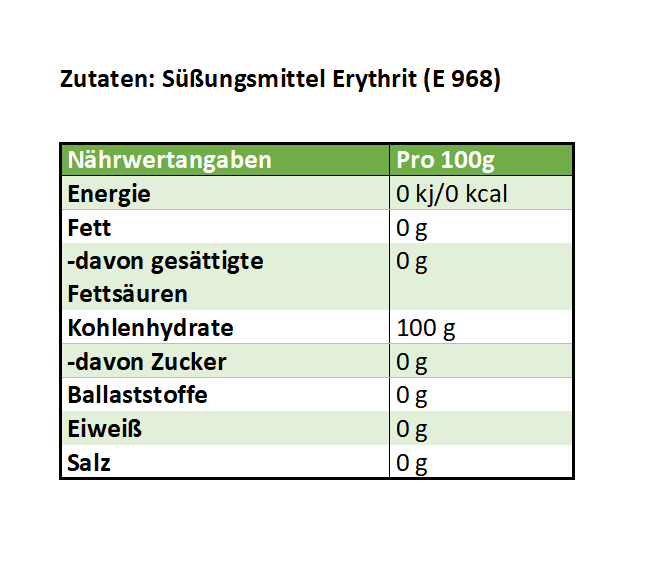 Erythrit wird als Zuckerersatz verwendet. Es hat einen erfrischenden Geschmack und ist ideal in der veganen Küche einzusetzen sowie auch für Diabetiker und all diejenigen, die verstärkt auf ihre Figur achten möchten.