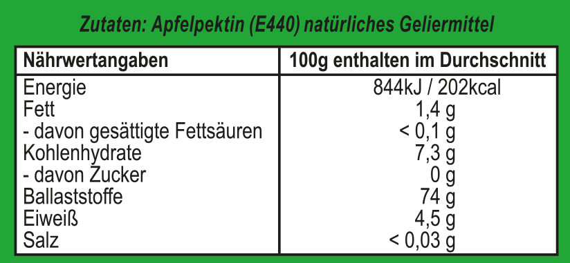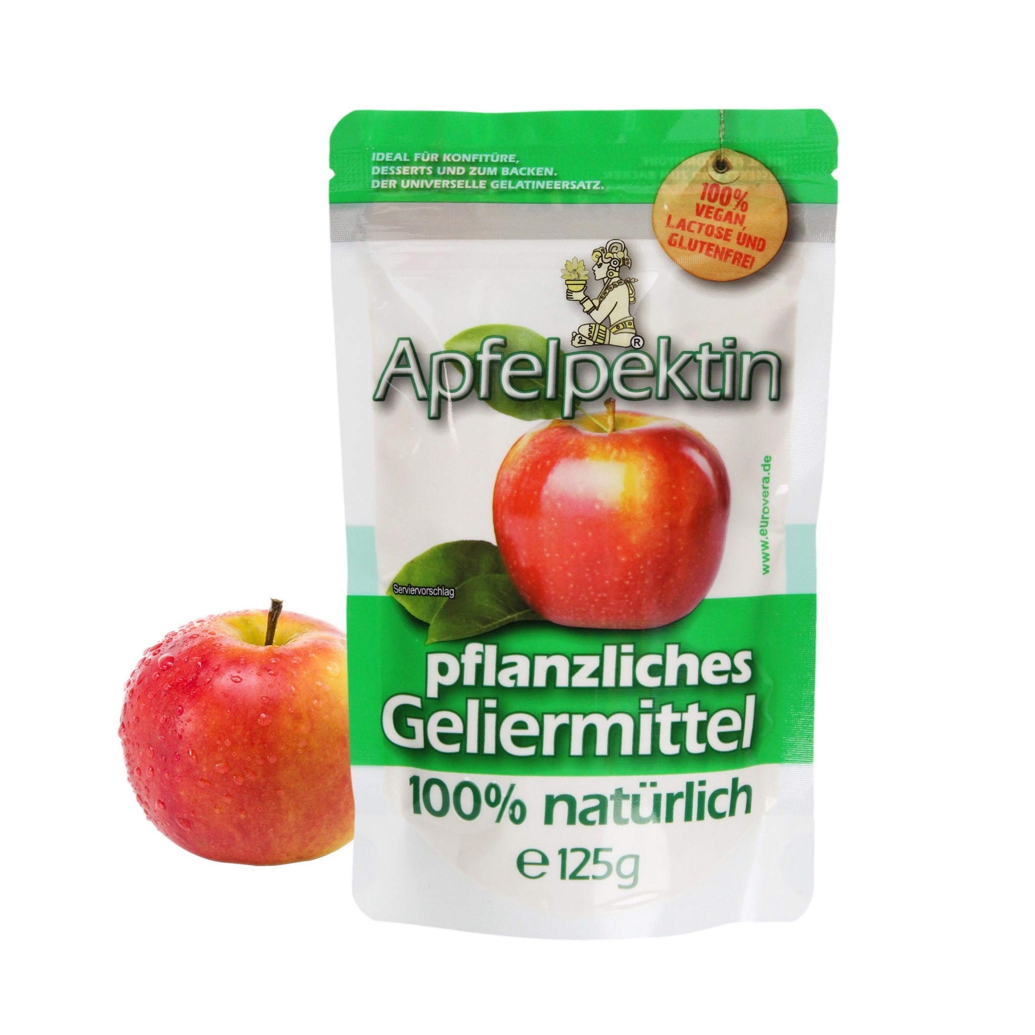 - Das Endprodukt sollte wahrscheinlich nicht so fest werden, somit reicht beim Austausch von Gelatine die Formel „1 bis 1,5 TL Pektin = 3 Blatt Gelatine“.