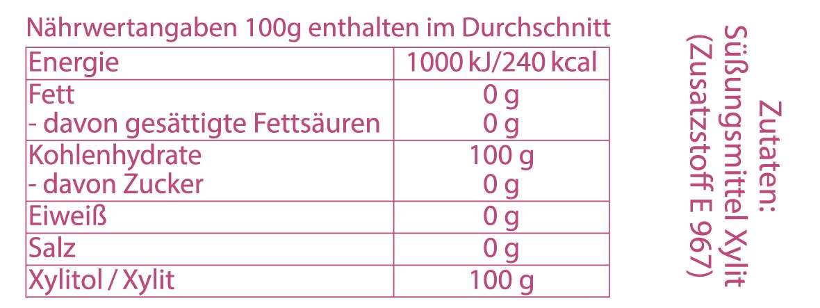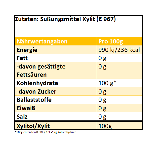 Xylitol wird aus nicht genmanipuliertem Mais gewonnen. Es hat einen erfrischenden Geschmack und ist ideal in der veganen Küche einzusetzen. Dem Verbraucher wird dieses Produkt zum universellen Süßen in der gesamten Küche, zum Kochen, Backen, für Süßspeisen, Dressings empfohlen. Es ist die Alternative für Anwender, die keine Flüssigsüße verwenden wollen.